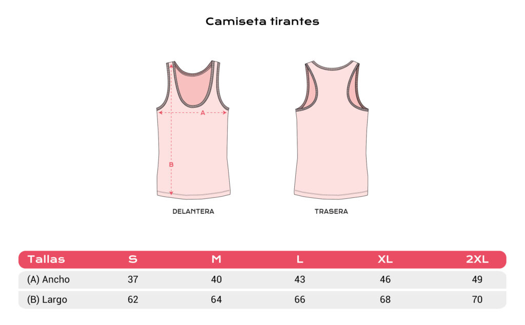 Personaliza esta camiseta de tirantes con la imagen que quieras. Ten muy en cuenta que el espacio de impresión no es muy grande. ¿Conoces nuestra herramienta para diseñar camisetas? Crear un diseño con los dibujos que te facilitamos en nuestra aplicación para diseñar.